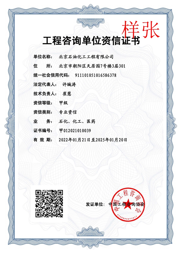 工程咨詢單位甲級資信證書(石化、化工、醫(yī)藥)