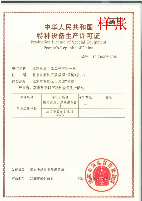 特種設(shè)備設(shè)計(jì)許可證(壓力容器)
