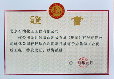 近日,由北京石油化工工程有限公司設(shè)計(jì)的延長(zhǎng)石油集團(tuán)煉化公司輕烴綜合利用項(xiàng)目喜獲中國(guó)化工施工企業(yè)協(xié)會(huì)化學(xué)工業(yè)優(yōu)質(zhì)工程獎(jiǎng)。