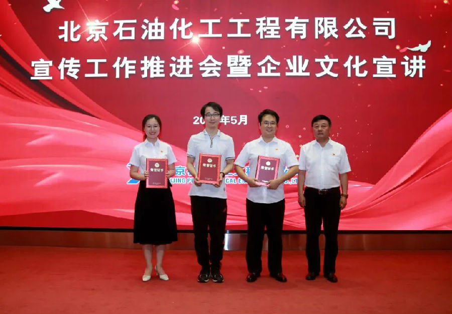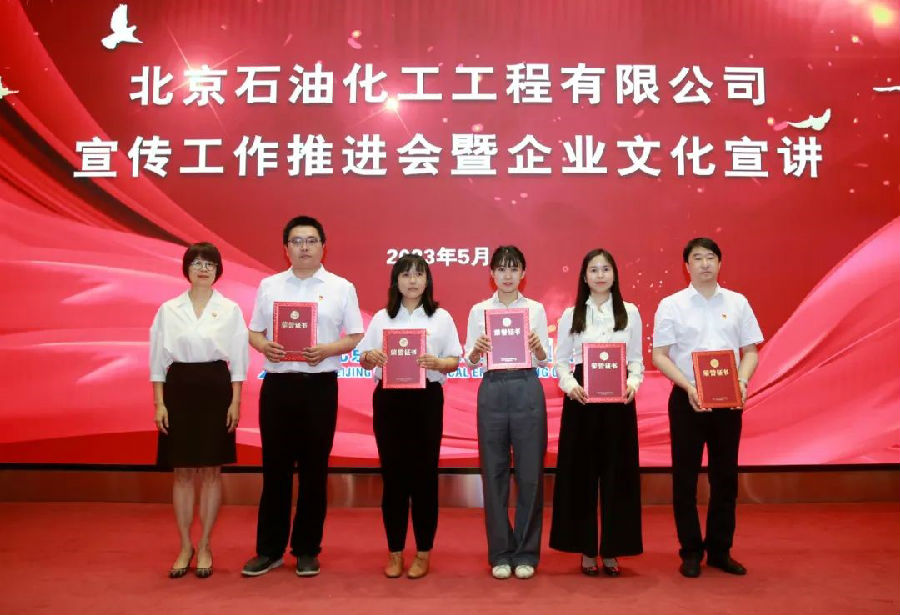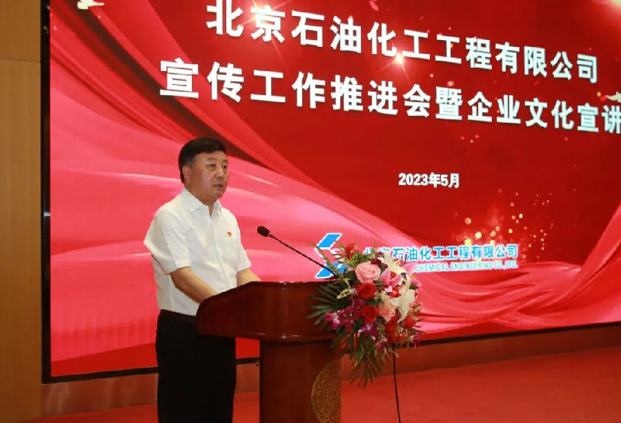 為進一步推進公司宣傳工作,促進企業文化落地,5月26日,北京石油化工工程有限公司召開宣傳工作推進會暨企業文化宣講,總結2022年以來宣傳工作,表彰2022年宣傳工作先進集體和個人,安排部署下一步宣傳工作任務,進行陜建企業文化宣講。本次大會共設置北京總部和西安分公司兩個會場,公司黨委書記、董事長許緘濤在西安分會場參會。