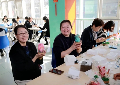 為增強慶祝活動的趣味性、挑戰性、協作性,組織開展手工制作“永生花”體驗活動。活動中,工作人員提前將材料進行分類準備好,并詳細講解“永生花”的制作流程和技巧。大家邊學邊交流經驗,以塑刀為針,以膠水為線,紛紛動起手來,傾力展示自己豐富的想象力和創造力,將工作中的細心、專心、耐心投入到“永生花”的制作上。經過個把小時,女職工們制作出了一朵朵精美的“永生花”,看著自己親手制作的作品,大家臉上洋溢著滿滿的成就感和幸福感。火熱的氛圍,也將此次“三八”節活動推向了高潮。