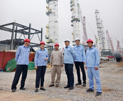 并與荊門源晗總經理同虎、總工程師王月昶深入交流項目整體要求,并實地檢查項目乙醇裝置各單元施工現場,重點對現場施工質量、安全進行檢查。作為荊門源晗電解液前驅體項目的核心裝置,對項目整體建成投產起著關鍵性的作用,項目部要克服工期緊、任務重、協調管理工作量大等諸多困難,加強內外部協調,形成推動項目建設的強大合力。在全力推進項目進度的同時,要嚴格落實“安全第一、質量為本”理念;順利實現項目建設各階段節點目標。