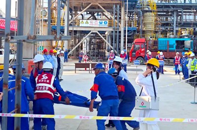 從事故發(fā)生到傷員轉(zhuǎn)移至救護(hù)車,全程僅耗時(shí)17分鐘,較預(yù)定救援時(shí)間提前3分鐘。此次演練全面檢驗(yàn)了應(yīng)急預(yù)案的實(shí)戰(zhàn)效能,為后續(xù)標(biāo)準(zhǔn)化作業(yè)流程優(yōu)化提供了重要數(shù)據(jù)支撐。目前,該項(xiàng)目已累計(jì)實(shí)現(xiàn)220萬(wàn)安全人工時(shí),總體進(jìn)度達(dá)88.7%,剩余工程將重點(diǎn)進(jìn)行4臺(tái)LNG儲(chǔ)罐充水試驗(yàn)、壓縮機(jī)“油運(yùn)”、管道試壓及保冷收尾作業(yè)。(通訊員/艾延波 圖/艾延波)