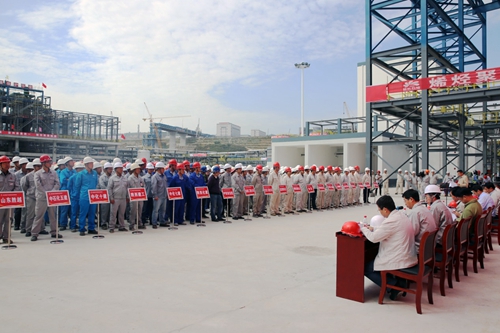 大會現場,公司董事長在表態發言中確立三點目標,一是入冬前完成高中壓蒸汽管線的吹掃工作和所有機組單機試車,加快完成所有具備條件的烘爐、烘襯工作;二是乙丙橡膠裝置完成全部土建和60%安裝工程,其他裝置完成全部的實物工作量;三是硫回收、PP、PE、甲醇、2PH裝置及公輔設施年底具備中交條件,其余裝置力爭具備中交條件。